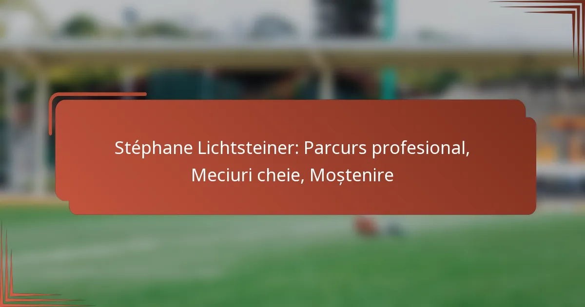 Stéphane Lichtsteiner este un fotbalist elvețian cunoscut pentru stilul său de joc dinamic și contribuțiile semnificative la diverse cluburi de-a lungul carierei sale. Parcursul său include realizări notabile în ligi majore, transferuri cheie și o reputație pentru abilitățile sale defensive și suportul ofensiv din flancul drept.